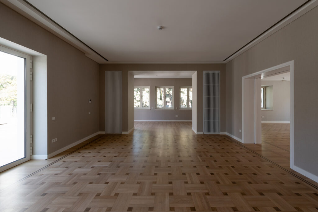 The project program included extensive works for structural retrofitting and energy-efficiency, redesigning and renovating façades and fully modernizing all electrical and mechanical systems. An addition of restroom facilities in the basement and a spacious veranda on the ground floor alongside the complete refurbishment of all formal rooms, distinguished by their generous proportions and refined detailing, aimed to enhance the building’s purpose as a prestigious space for official gatherings, formal receptions, and diplomatic functions. Additionally, a new guard house and car parking shelter offer additional operational efficiency. The surrounding landscape was rendered accessible, and vegetation was enhanced. A lower, enlarged veranda served as a focal point for open-air gatherings, such as the yearly celebration of the German Unity Day.