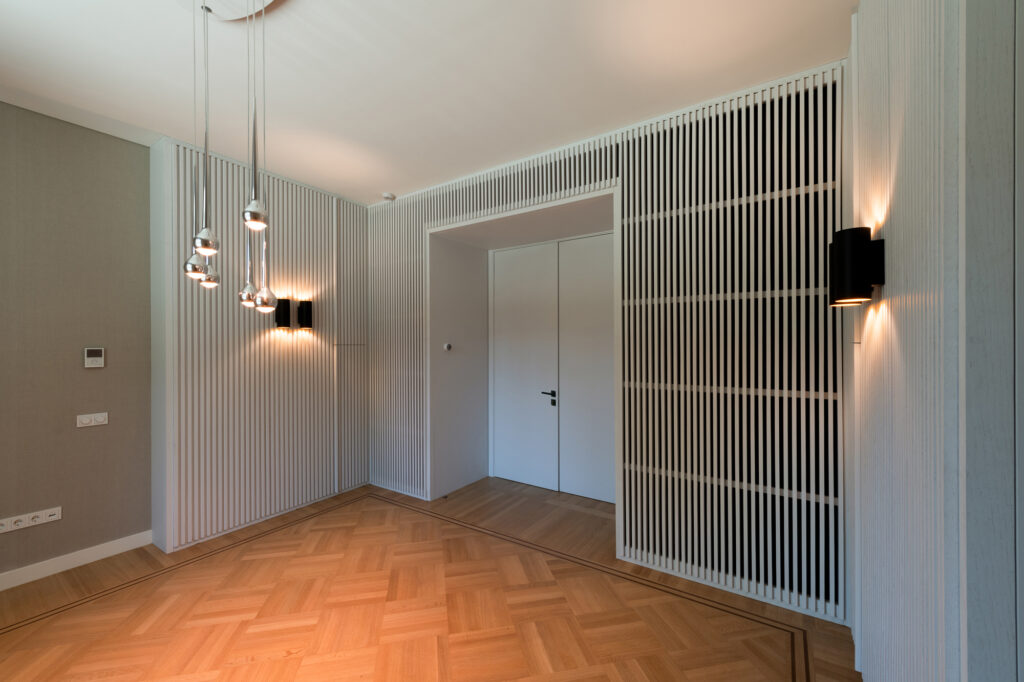 The main part of the building is a stone, pre-war construction. Over time, extensions were incorporated using reinforced concrete. The residence’s interior features grand spaces on the ground floor, including an expansive dining hall and a great living and reception room. Private rooms occupy the first floor.