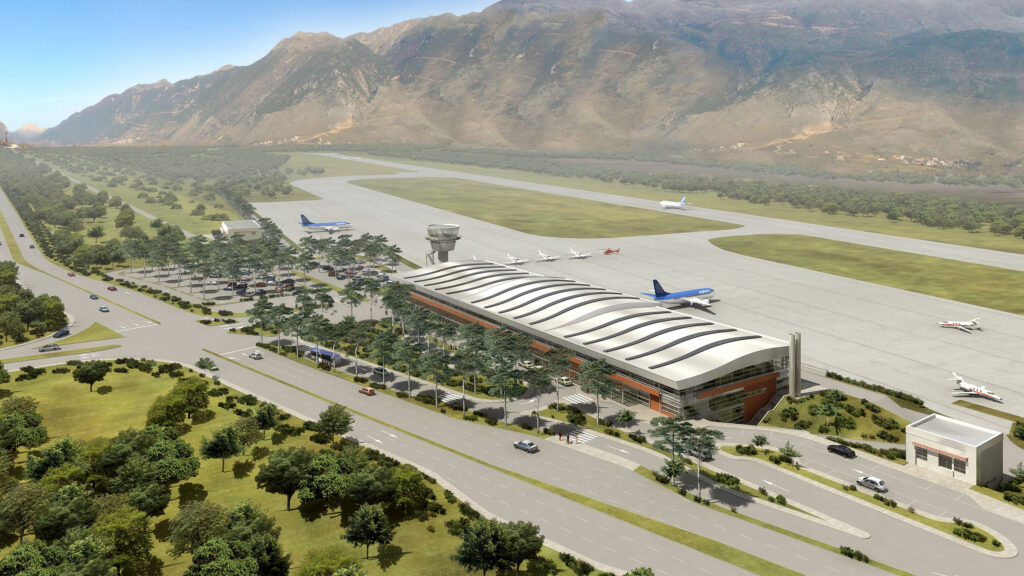 The project involves the construction of a new passenger terminal, with a GFA of 10,500 m²; to accommodate 270,000 pax/annum, a new air traffic control tower and new cargo and fire station buildings, the extension of the airside apron and the landing runway as well as the reorganisation of the landside facilities, including car parks.