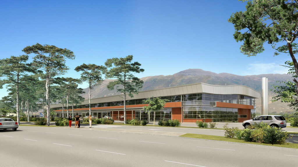 The linear organization of public and operational zones allows for efficient processing and clear separation of functions. The building is strategically oriented toward the landscape of Ioannina, maximizing visual connections to the lake and surrounding mountains through an extensive glazed façade system. Its horizontal form and curved, wave-like roof echo the contours of the terrain and the motion of flight. Transparency and natural light create openness and visual connection between interior and exterior, while earth-toned materials harmonize with the environment.